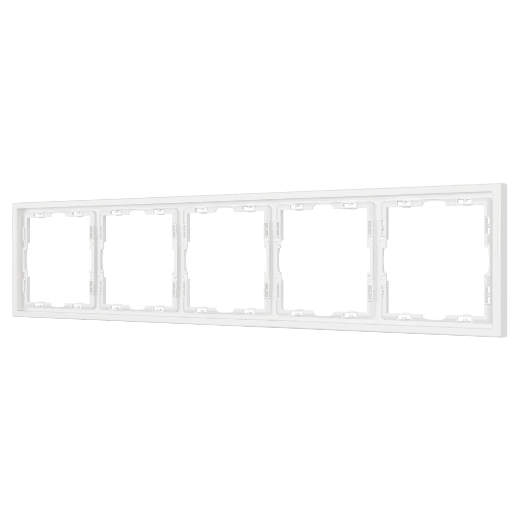 Рамка пластиковая на 5 постов, под встраиваемый механизм. Цвет - белый кварц, с Soft-Touch покрытием. Среднего уровня герметичности IP20. Ориентация монтажа горизонтальная.